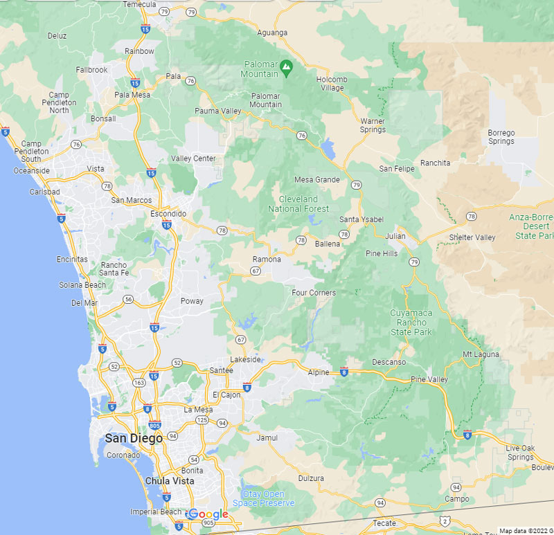 Service area coverage in San Diego County and beyond: